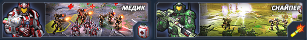 Медик - Восстанавливает здоровье соседних солдат. Способность: боевой дух. При активации, значительно повышает основные параметры солдат.