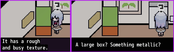 However, it is a little different from ordinary escape games, the girl doesn't have enough 'awareness' in the beginning, and she can only recognize a 'fridge' as 'a large metallic box' or 'tree' as something with 'rough and busy texture'.