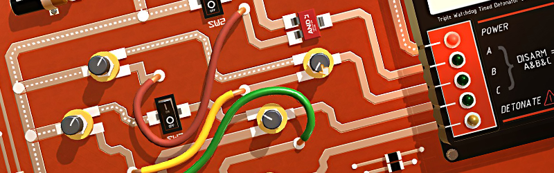 Analyze the way the electronic boards function and identify how to disable the detonator. Be careful though, cutting the wrong wire or flipping the wrong switch might just trigger the bomb.