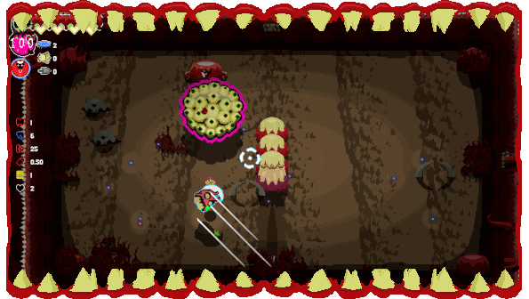 Contract diseases as you play. Diseases are powerful but come at a price. Do you risk the poison of diarrhea for the speed and urgency it creates in you? Leave the disease behind, and the body will consume the disease increasing the difficulty. Take entamaphobia to give all doorways a powerful laser. However, doors now cause damage by going through them. There's a creature that can administer a cure. But where and when you find him is unknown.