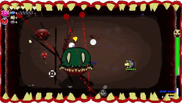 Use the agility and stickiness of your little gummy to run on walls to escape bullet hells. Jump high into the air to get a better view or to dodge an impossible amount of bullets. While your in the air, why not take the time to reflect on your life. The purchase you made....WAIT! That enemy is stunned! JUMP ON IT!!! As a kid, did you ever try to re-insert your baby tooth back into its gummy cavity? No? Well now's your chance! Shoot your tooth and suck back! Time it just right to inflict extra damage.