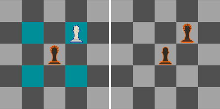 Если пешка захвачена священником, она будет конвертирована в тот же цвет и помещена на предыдущую позицию священника: