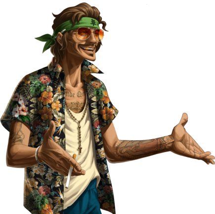 He makes ends meet in Osaka by peddling drugs - usually, as he likes to refer to them, 'trees' or 'nose clams'. Vince is 100% the sort of guy to get high on his own supply, often prohibiting him from accomplishing such Herculean tasks as properly verbalizing thoughts and generally making sense, but through the sheer brute force of stoner charisma he's always somehow able to turn the conversation around to his favor in the end.