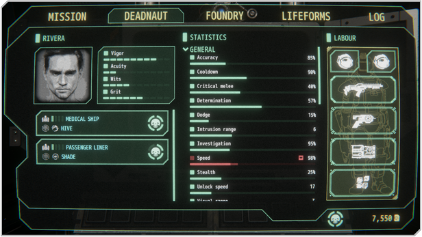 Select from five exosuits, each with dozens of unique skills and abilities. Customise your Deadnaut with weapons, sensors, shields, cloaks and hack tools. Choose from the heavy-duty Labour suit, the ghostly Sensor suit, or the gravity-bending Energy suit, or other playstyles to match your preferences.