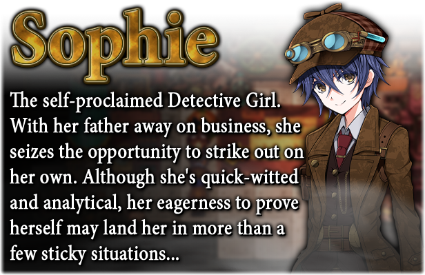 Sophie's father is one of those famed detectives, but while he's abroad when the police come knocking, Sophie decides it's her time to shine! After all, she has years of experience as an assistant detective under her belt, so she's more than ready to make a name for herself and strike fear into the hearts of criminals!