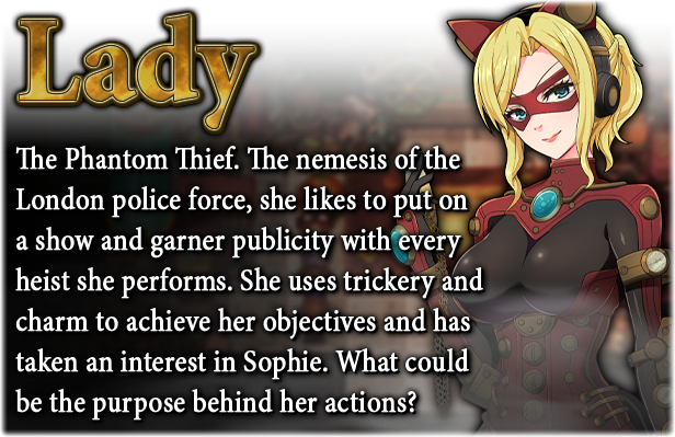 Then again, with London's seedy underbelly making its move and the mysterious Phantom Thief terrorizing museums and the upper class, maybe Sophie's bitten off more than she can chew. Can she beat the odds and get to the bottom of the mysteries plaguing the city? Find out in this steampunk RPG!