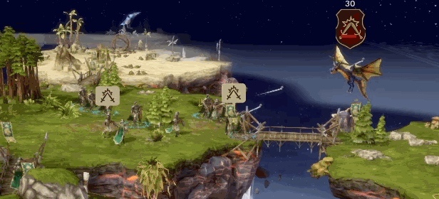 Геймплей фокусируется на определении общих целей для всех ваших боевых единиц без необходимости микроуправления каждой из них. Воины, лучники и маги под вашим началом могут приручать и седлать разных летающих зверей и создавать различные воздушные боевые единицы.