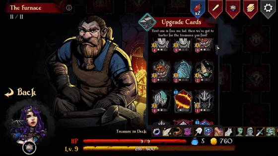 Вы можете улучшать свои карты в магазинах . Путешествуя по подземелью, вы сможете повышать уровень своего героя, находить мощное оружие, артефакты и развивать способности. Создайте своего уникального фэнтези героя, осторожно выбирайте чему научиться, какие карты сбросить и с кем сражаться.
