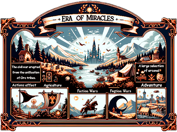 Era of Miracles - представляет собой уникальное сочетание приключенческой игры и игры в открытом мире, где игроки вживаются в роль путешественников, исследующих богатый и разнообразный фэнтезийный мир. В этой игре игрокам предстоит исследовать уникальные локации, каждая из которых обладает своей неповторимой атмосферой и историей.