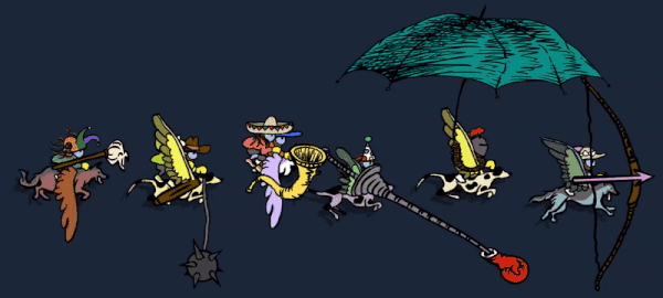 Flock of Dogs is a quirky, top-down, action and adventure game about riding flying dogs with your friends. Inspired by storybooks, cartoons, and neighborhood parks, the game is split into two main experiences. They are the Minigame Park and the Flight to the Festival.