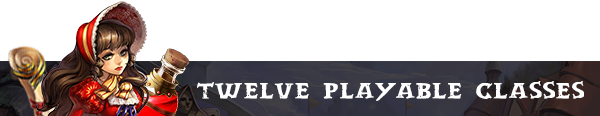 - 12 playable classes: 4 Basic classes (Explorer, Mercenary, Noble and Saint) change to 8 other specific classes – at level 40.