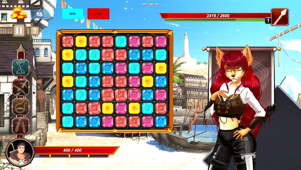 The gameplay consists of a mix of classic match3 and some elements of magic. There are five different magical elements in this game. Choose your next move carefully, as each of them affects you and your opponent differently.