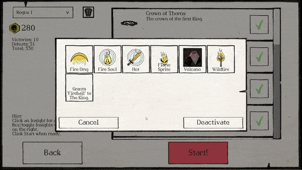 Каждая карта может быть изменена на протяжении компании с помощью чар. Добавьте к Дождю 'Элекризованность' и он станет грозовым облаком. А к огненному шару немного урона и АОЕ, чтобы сделать его взрывным.