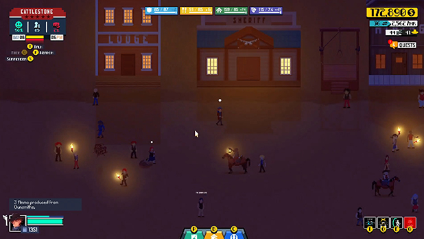 - Town Economy - The player needs to take care of the Cattlestone town by running businesses and managing civilian's role to generate incomes and attract more travelers and civilians. There are four factors to take care of: Security Support, Food Support, Shelter Support, and Social Support.