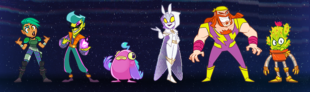 Выбирайте любого героя: от грозного космического рестлера до смертоносного мотылька-убийцы, а еще пушистого пришельца в полном замешательстве. У каждого персонажа есть уникальный навыки и свой стиль игры. Поэтому найдите своего идеального персонажа и взорвите всех своих друзей и близких перед целой галактикой ликующих поклонников.
