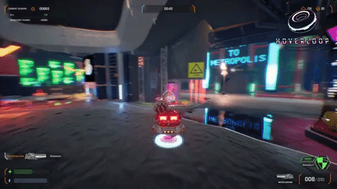 In Short: Hoverloop is a Multiplayer Arcade Arena Combat game. The game is currently in Early Access containing community hosted servers that you can host yourself and offline splitscreen. Online matchmaking and season pass progression will become available upon release, this fall 2019.