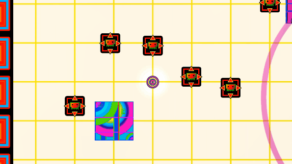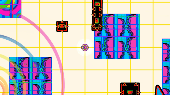 Главный герой глаз, он может очень быстро перемещаться по клеткам он излучает свет и энергию, но боится пил и острых блоков с черепами.