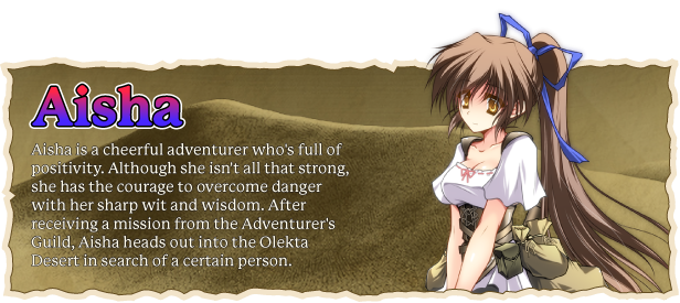 Aisha, a crafty, quick-witted thief in the Adventurer's Guild, takes on a mission to deliver a letter to a mage who lives in the infamous Olekta Desert. To reach him, she must get through a heavily guarded cavern, traverse perilous, trap-filled ruins, and defeat unhinged bandits and cultists. Along the way, there will be many dangers... perhaps even a dreadful dragon. Will Aisha be able to survive and find her way to the mage safely?