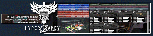 - All weapons and attachments from the game are unlocked from the start, there is no pay to win scheme, absolutely everything will be unlocked, the only thing that gets in the way is the point budget system mentioned in the above paragraph. However, there are and there will be weapon skins and attachment skins that will be paid. Player model skins will always have their color scheme (dark swat-ish blue for military and dark red-ish for terrorist team) so nobody can say that we will sell camouflage skins for player models. There will also be paid animations. Basically some cosmetic items will have a price in our stores to help us sustain the game.