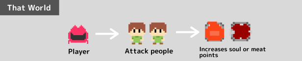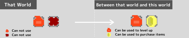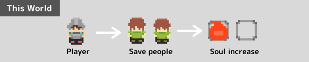 Defeat powerful enemies and save people. Use your Soul Points and items brought back from that world to gain strength and confront the mighty army. The number of Soul Points earned in that world will increase by the number of saved residents. It saves those who seek help.