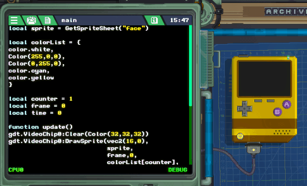 You've built your gadget, now it's time to code! Write and debug your own code in our Lua coding environment, or upload it directly to the CPU. Program games, live weather stations, drum machines, cameras, video players, radios... the possibilities are endless.