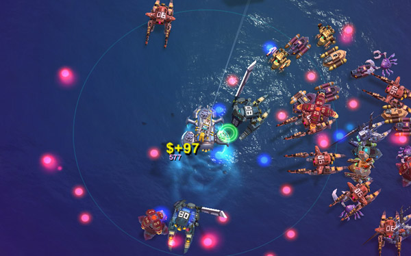 Вы можете видеть, что враги исходят от моря. Есть много роботов, которые будут атаковать вас. Если вы не можете уничтожить их, они уничтожат вас.