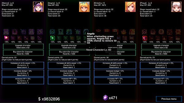 Вы можете обновить своих любимых персонажей и выбирать их таланты.