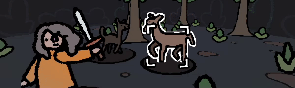 Explore a big island full of different biomes, each with their own quirky characters. Fight angry seagulls on the beach, hunt the fabled goat riders in the northern tundra and enter the old mountain road after finding an ancient key. 🗝️