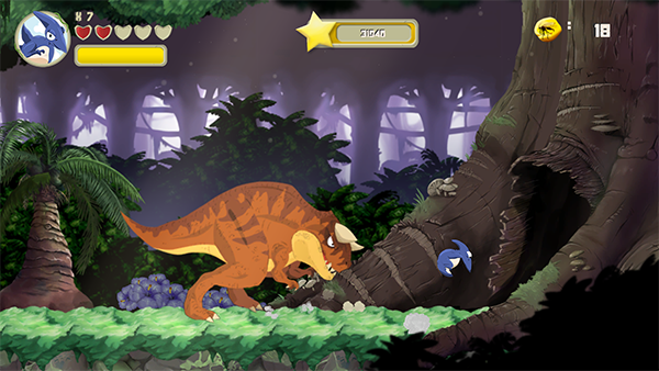 In order to survive in such a harsh environment, little Saurio had to develop some special tricks. Saurio has a big arsenal of abilities that will allow him to defeat the most terrible enemies.