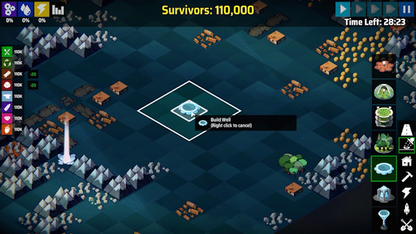 And, that's T-Minus 30. A timeboxed city builder that focuses on resource propagation, exploration, and saving as much of humanity as you can before the Earth explodes.