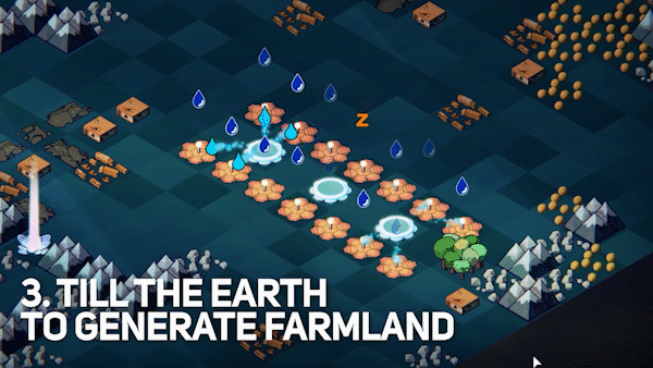 Then you create Tilled Earth, which receives that Water and becomes Farmland, which in turn produces Food.