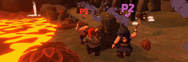 - Играйте в команде до четырех гномов — либо онлайн, либо с разделением экране (под пиво, разумеется)!