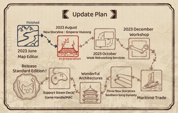 In Story Mode, you'll experience the history of the Song Empire first-hand. Actual historical events are referenced heavily, so time is an important concept you'll need to keep in mind.As the game progresses, you must complete tasks assigned by the emperor's edicts, take part in major events throughout each dynastic period, make key decisions and lead your city into the future.
