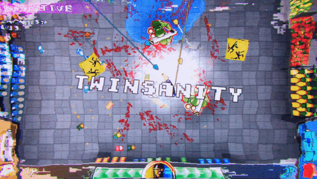 Both of you control movement, so that means communication with your other half is key. Move in OPPOSITE directions, and TwinCop will go nowhere. Move in the SAME direction, and you will move swiftly and heal yourselves. Moving together is the ONLY way to heal, and it also charges your combined super ability, Twinsanity, which slows down time and really lets you gain the upper hand in tough situations.STORY MODE: ABSURD 80s SATIRE