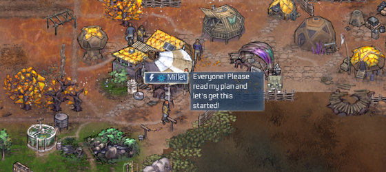 Indirect control -- the colonists are free and have a democratic society. Dissatisfied people can either leave or vote for improving their colony: Only if you have ambitious inhabitants will you access better technology and develop a camp into a comfortable town.